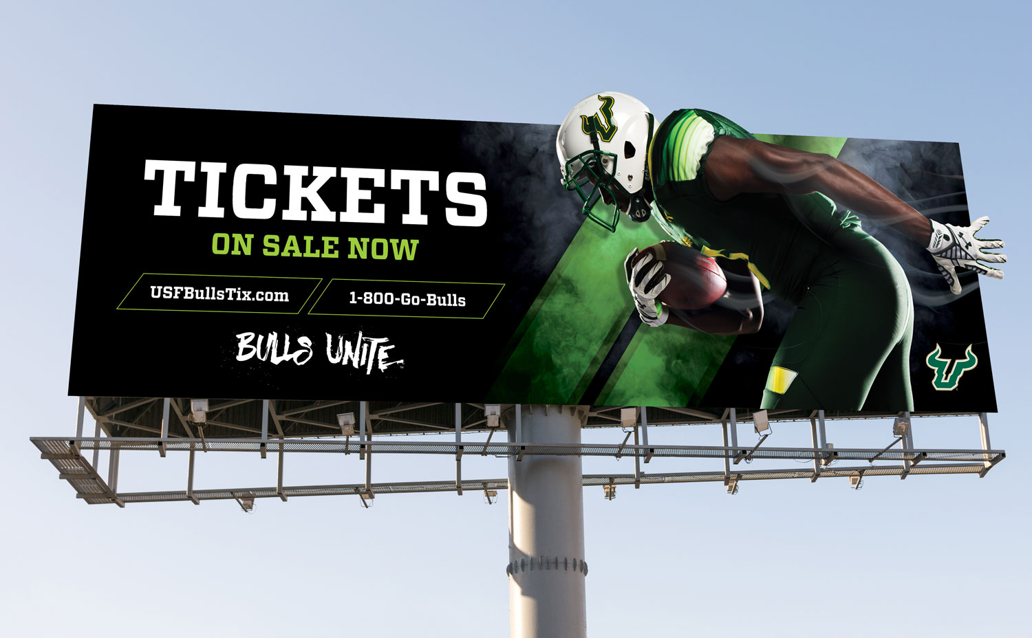 This is a collection of design projects I worked on for the University of South Florida football team during the 2015 and 2016 seasons. Projects included outdoor, posters, season ticket booklets, signage and advertising.